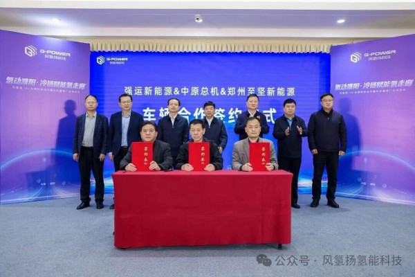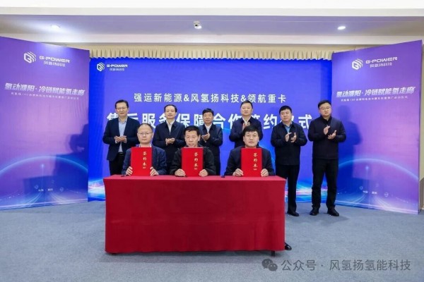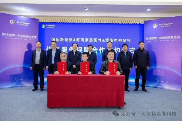濮阳燃料电池汽车示范推广联合体成员:风氢扬科技、强运新能源、中原总机、郑州至坚新能源、河南宗惠氢气、濮阳中裕燃气、领航重卡共同签署战略合作协议,并形成三点共识: